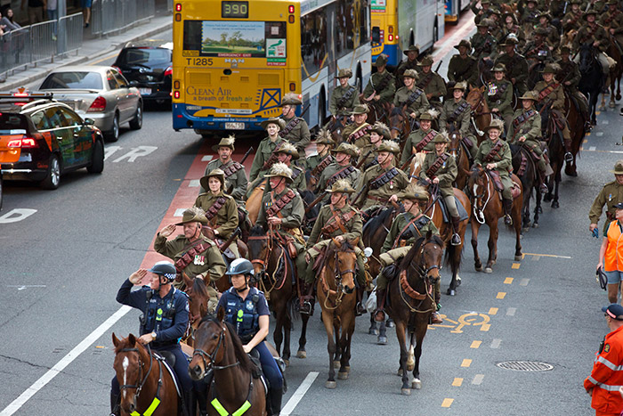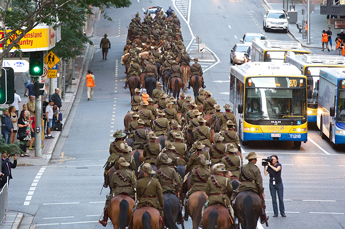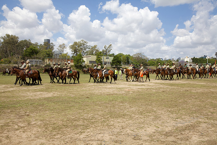 In addition to the exhibition at South Bank, a spectacular commemorative ride of 83 horses from the Australian Light Horse Association was staged through the streets of Brisbane. Spectators gathered along Adelaide Street to honour the memory of the Light Horsemen in the First World War.