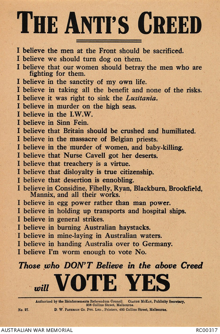 Second conscription referendum leaflets and pamphlets. (Australian War Memorial.)