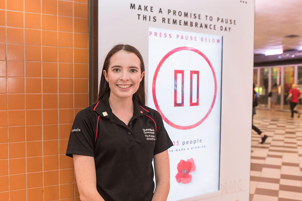 Queenslanders were then invited to make a pledge to pause on Remembrance Day, with participants receiving electronic calendar prompts and Facebook reminders to stop for one minute on 11 November.