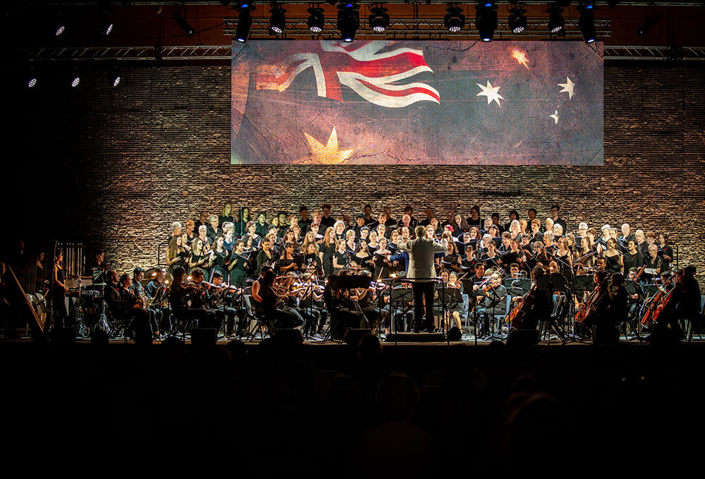 Two free commemorative concerts in Toowoomba and Cairns in the days before Remembrance Day welcomed more than 290 local choristers and 115 local musicians on stage to perform alongside renowned baritone Teddy Tahu Rhodes and award-winning singer Katie Noonan.