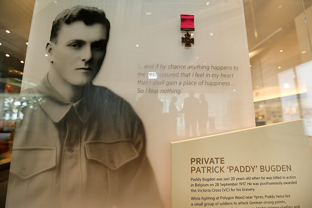 Featured in the gallery is the story of Patrick ‘Paddy’ Bugden’s Victoria Cross, which he was posthumously awarded after being killed in action in September 1917 near Polygon Wood in Belgium.