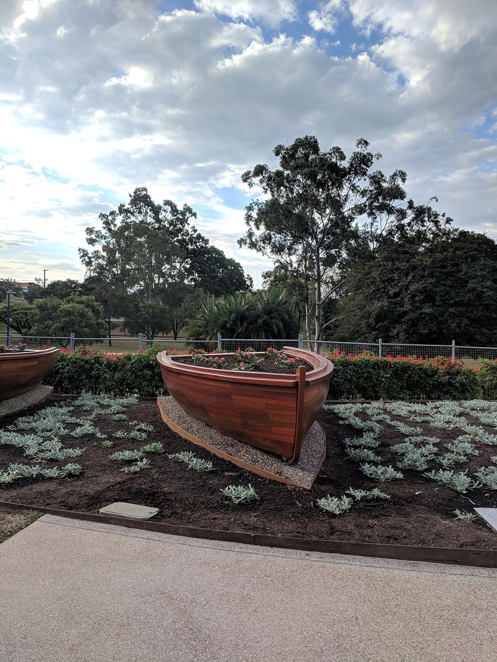 A selection of panels focus on the story of the Gallipoli campaign from the perspective of Queenslanders from Wide Bay, with QR codes so that visitors can download an audio version of the story. Nearby is a scale model, crafted out of ironbark, of the bow of the rowboat which carried Lieutenant Chapman and 26 other men to the northern end of Anzac Cove.